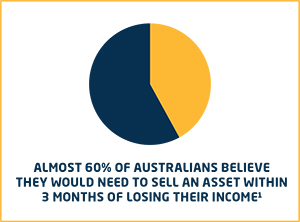 Unfortunately, 60% of Australians believe they’d need to sell an asset within three months of losing their income1. So it’s something that can’t be ignored.
